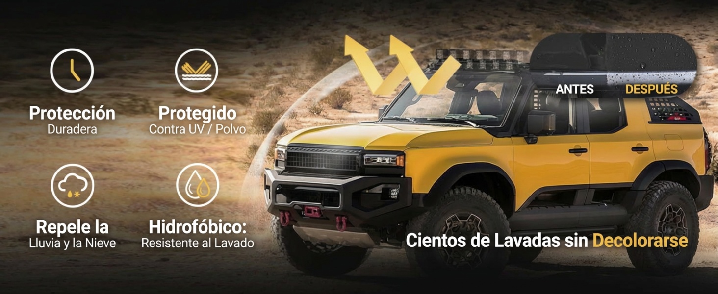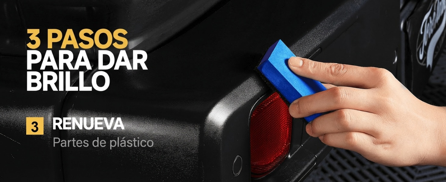 Forma una capa protectora duradera que repele el agua, resiste los rayos UV y el desgaste diario, manteniendo los plásticos como nuevos por cientos de lavadas.
