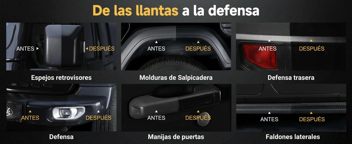 Restaura una amplia gama de plásticos del auto (defensas, guardafangos, manijas de las puertas y más), devolviendo a las superficies descoloridas un aspecto de fábrica. Un producto indispensable para que tu auto luzca siempre impecable.